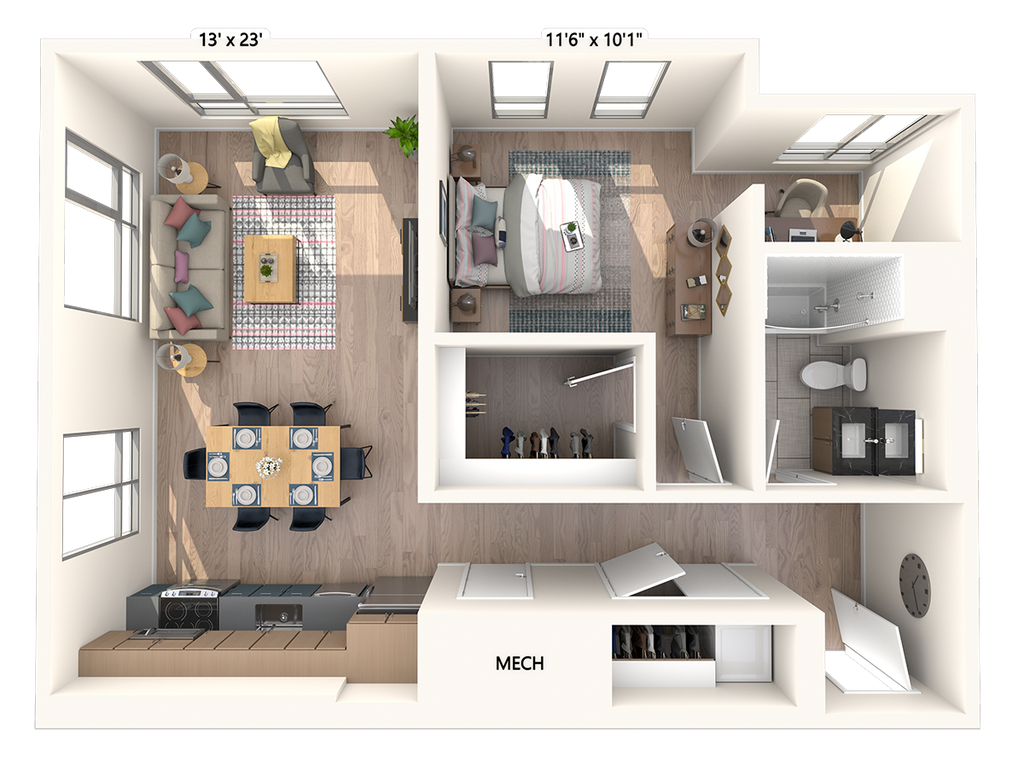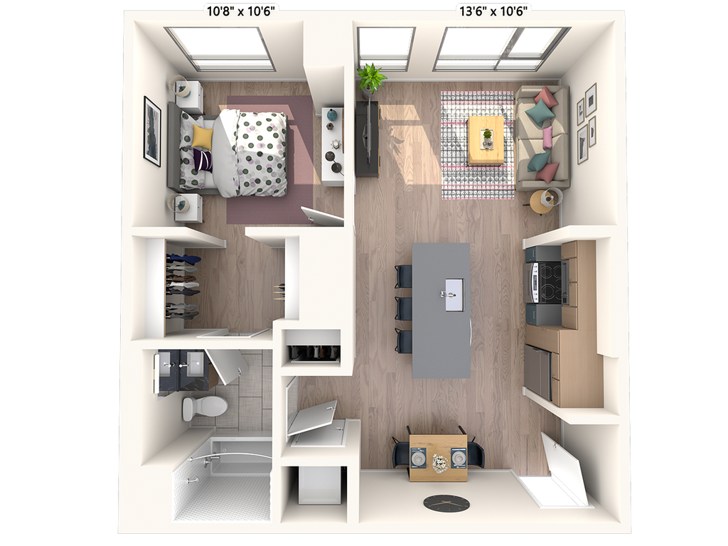 Studio, 1 Bath, 617 sq ftTotal Monthly PriceAvailable NowModel Gallery