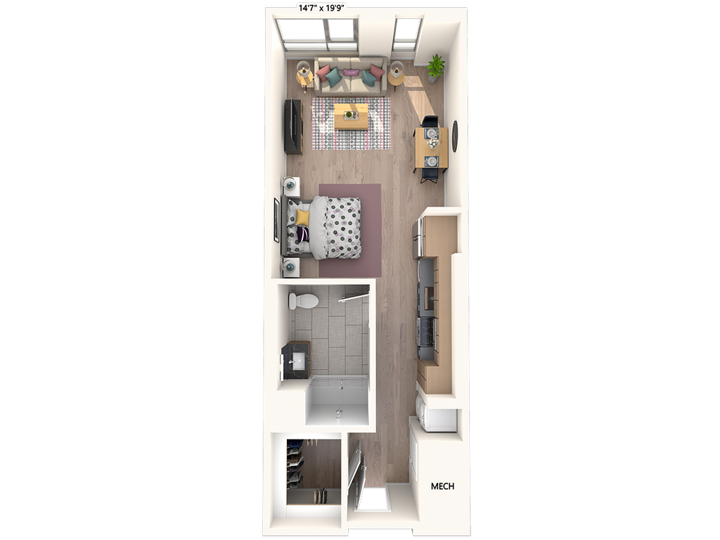 Apartment Model: W-A20$3,230Studio, 1 Bath, 580 sq ftAvailable NowFloor plans are artist's rendering. All dimensions are approximate. Actual product and specifications may vary in dimension or detail. Not all features are available in every rental home. Prices and availability are subject to change. Base rent is based on monthly frequency. Additional fees may apply, such as but not limited to package delivery, trash, water, amenities, etc. Deposits vary. Please see a representative for details.