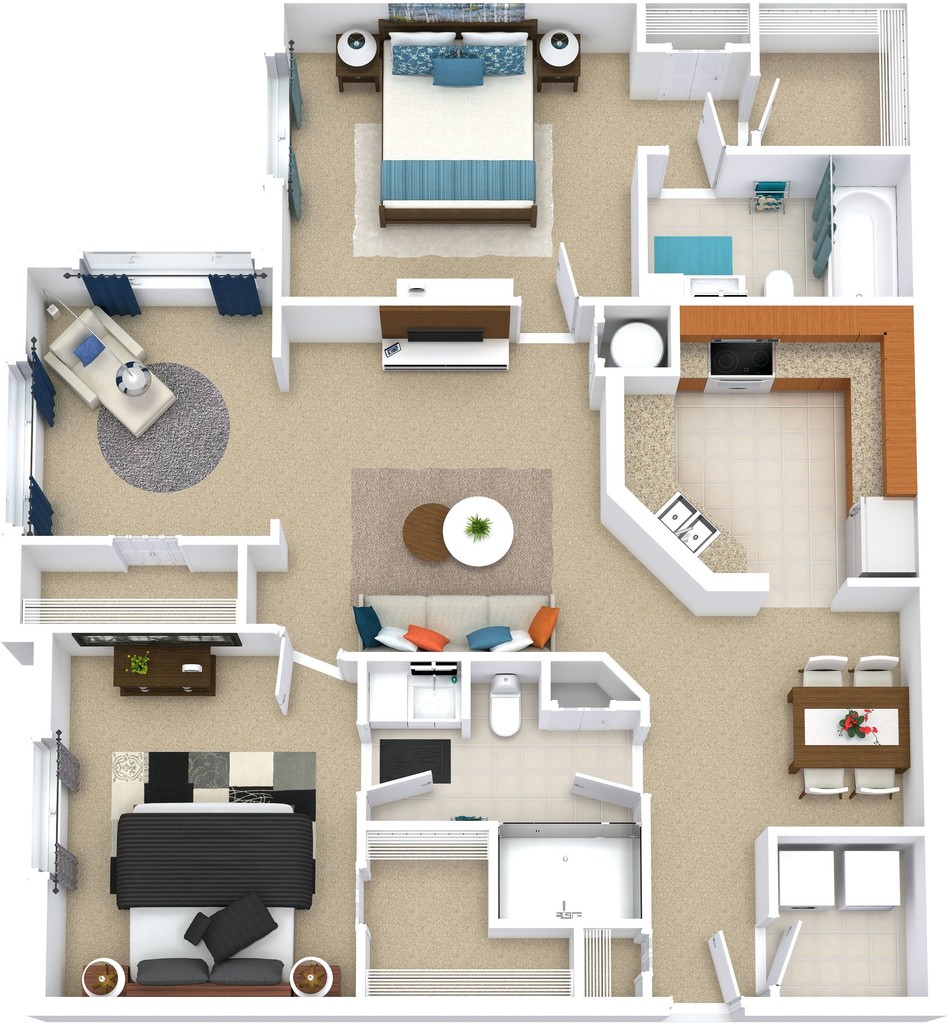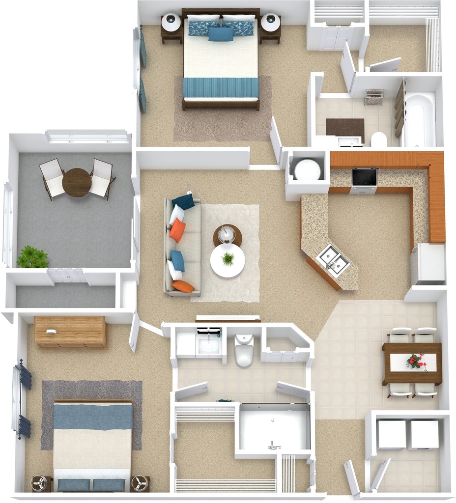- 2 Bedrooms- Monterrey- From $1,5972 Beds, 2 Baths, 962 sq ftAvailable Now- Model Gallery- Floorplans- Availability Details- Price - Availability Date - Unit - Sq Ft - $1,699 - Available Now - 02-207 - 962 - $1,608 - Available Now - 12-212 - 962 - $1,708 - Available Now - 08-208 - 962 - Model Amenities and Features- Features- Air Conditioning