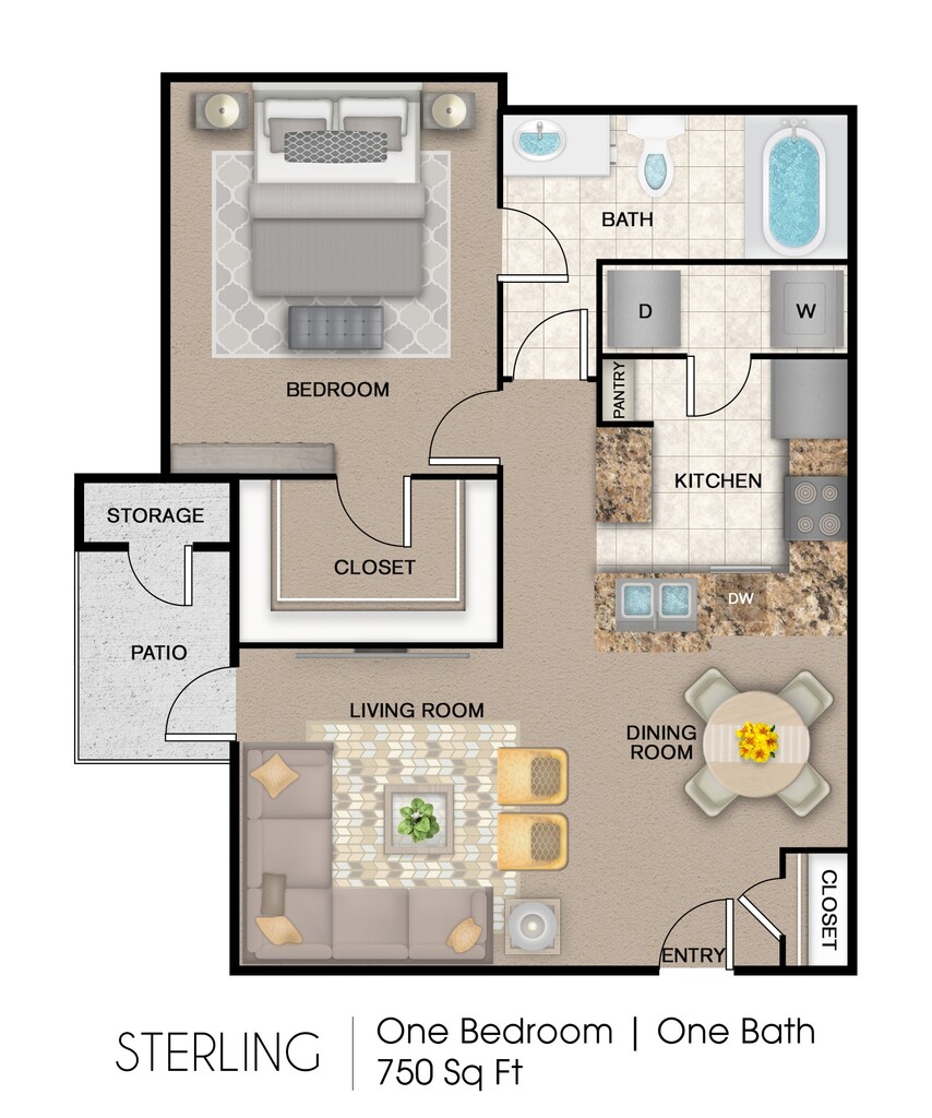 Apartment Model: SterlingFrom $8391 Bedroom, 1 Bath, 750 sq ftAvailable NowFloorplansPhotos![]()