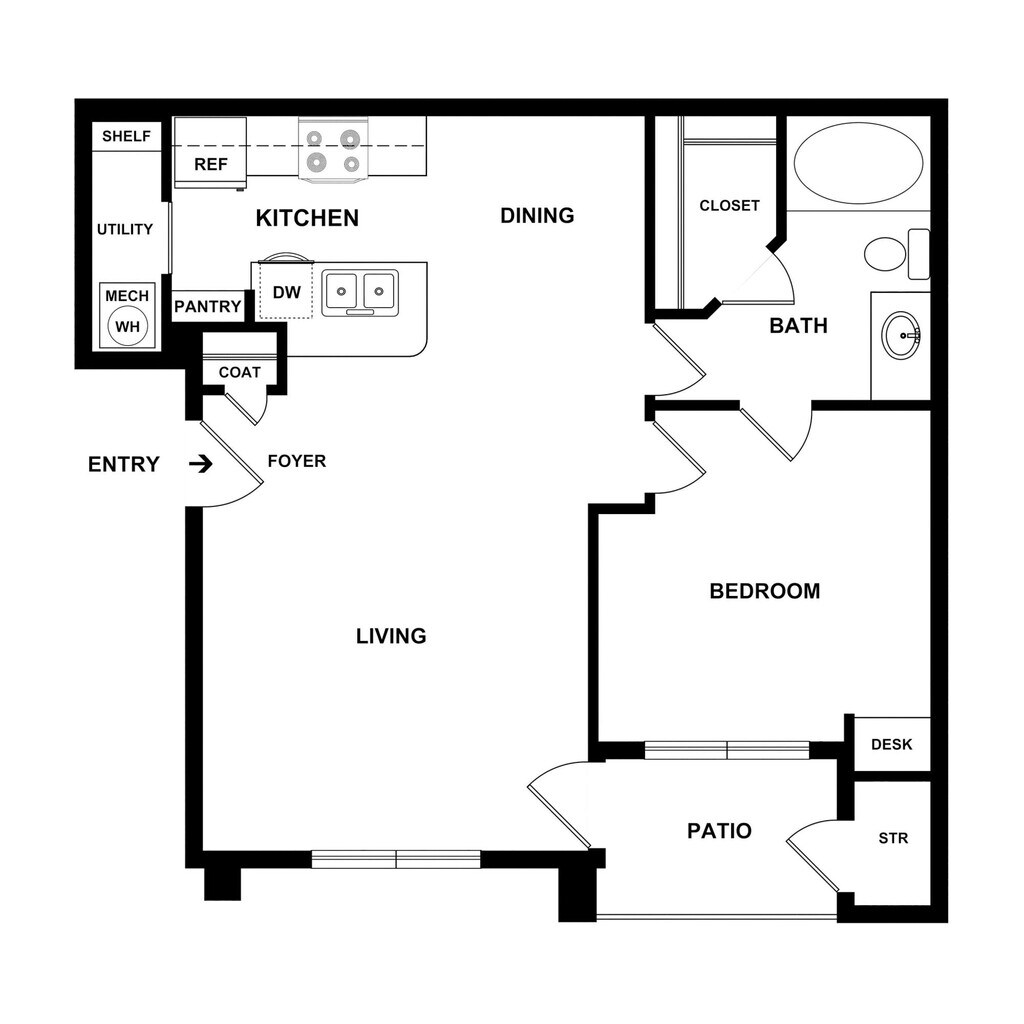 1 Bed, 1 Bath, 727 sq ftAvailable NowModel Gallery