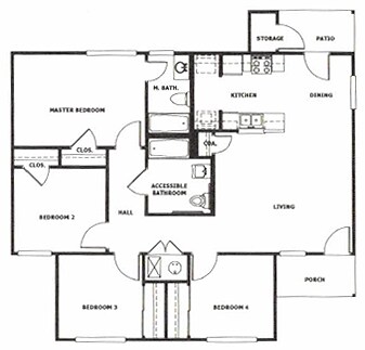 Mision del Valle 4 Bedroom Apartment - Floorplan 1 Mision del Valle 4 Bedroom Townhome
