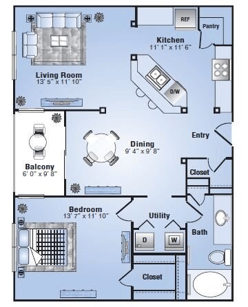 Apartment Model: 1x1DcT11 Bedroom, 1 Bath, 786 sq ftUnavailable![]()