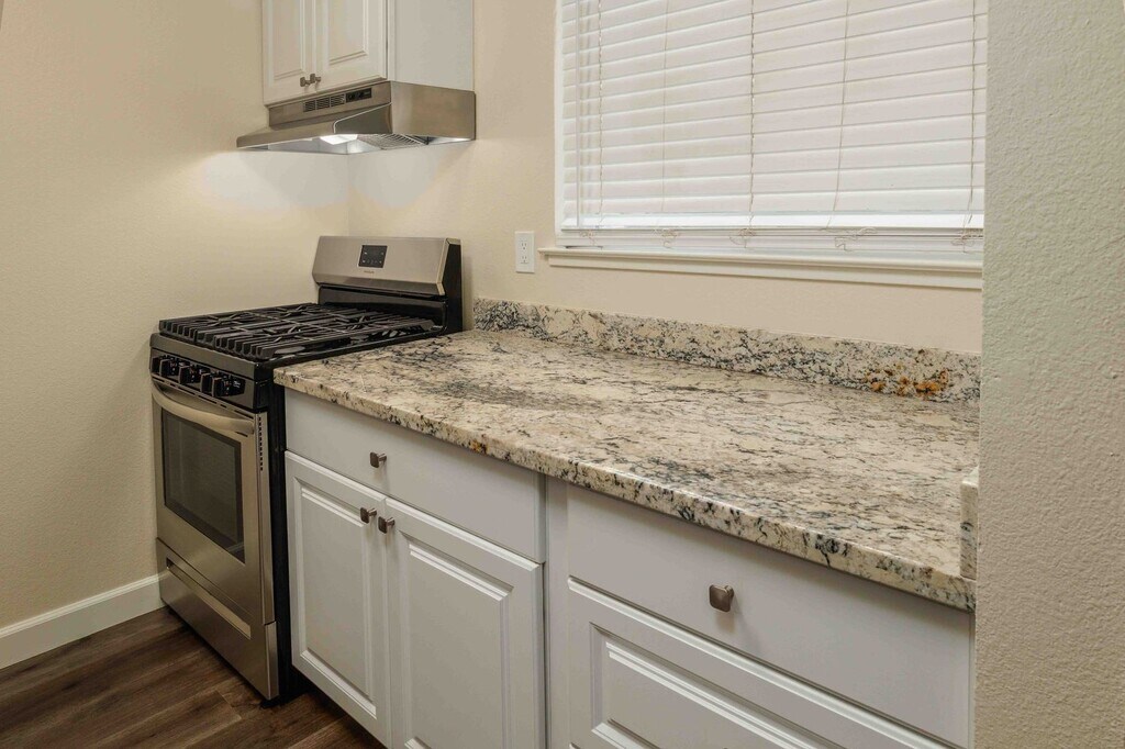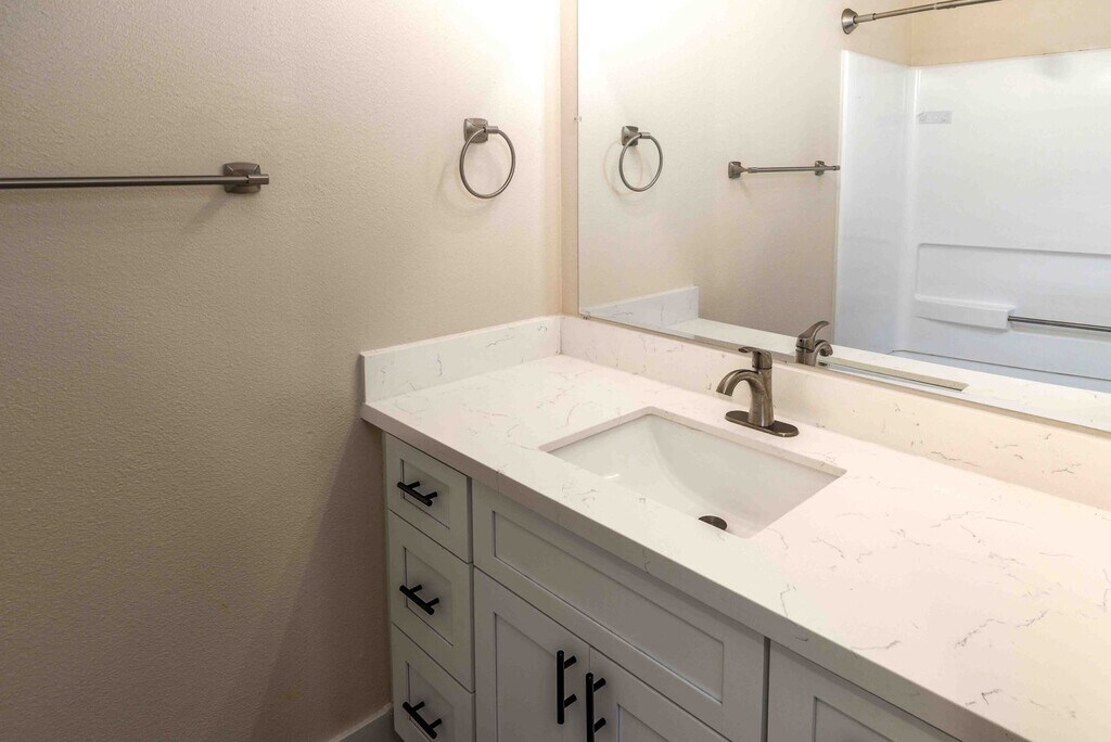 Our one-bedroom, one-bath apartments offer bright, single-level living with a clean, contemporary design. The open layout connects a comfortable living area with lots of natural light to an efficient kitchen featuring modern appliances, durable countertops, and a practical workspace. The bedroom includes generous closet storage and easy access to the well-appointed bathroom with updated fixtures and tile accents. Air conditioning and thoughtful finishes add everyday comfort, to these homes in our quiet Rincon Valley setting.