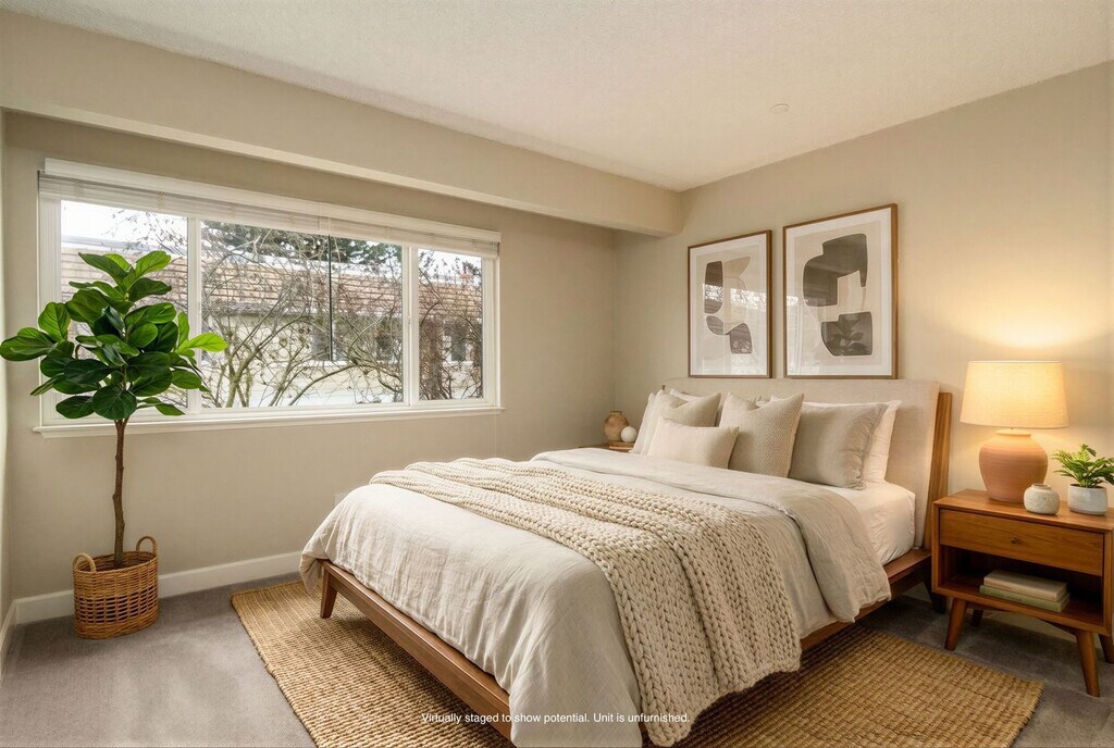 Our two-bedroom, one-and-a-half-bath townhouses offer a comfortable two-level layout with practical design and inviting living spaces. The main floor features a bright living area with plank-style flooring and sliding glass doors that open to a private patio. The efficient kitchen includes modern appliances, durable countertops, and a convenient layout for everyday use. Upstairs, two bedrooms provide spacious closets, natural light, and easy access to the full bathroom, with a half bath conveniently located downstairs. These townhomes combine comfort and functionality in a quiet Rincon Valley neighborhood.