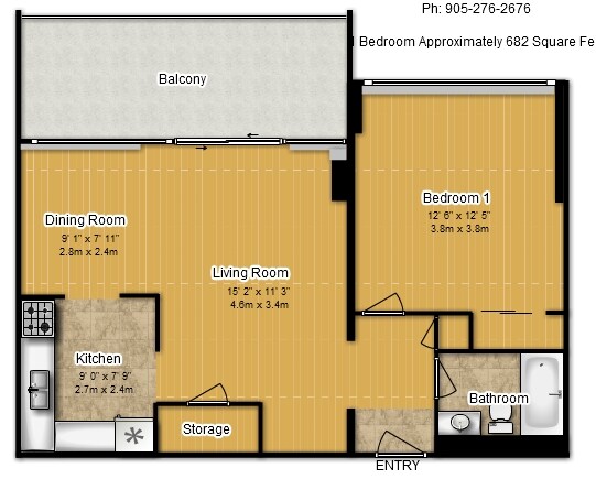 F1 - Floorplan 1 Apartment Unit: 1502Apartment Model: F1$2,2102 Bedroom, 1 Bath, 900 sq ftAvailable January 7, 2026