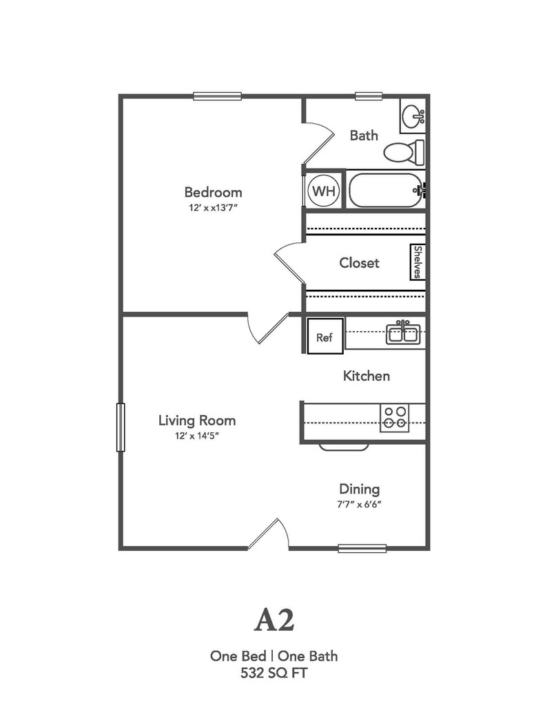 Apartment Model: 1 Bedroom 1 Bathroom1 Bedroom, 1 Bath, 532 sq ftAvailable Now![]()
