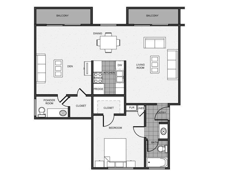 1 Bedroom 1 Bathroom A1 - Floorplan 1 1 Bedroom 1.5 Bathroom with Den