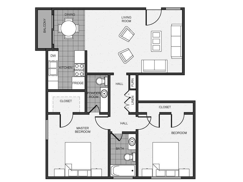 2 Beds, 1.5 Baths, 986 sq ftModel Gallery