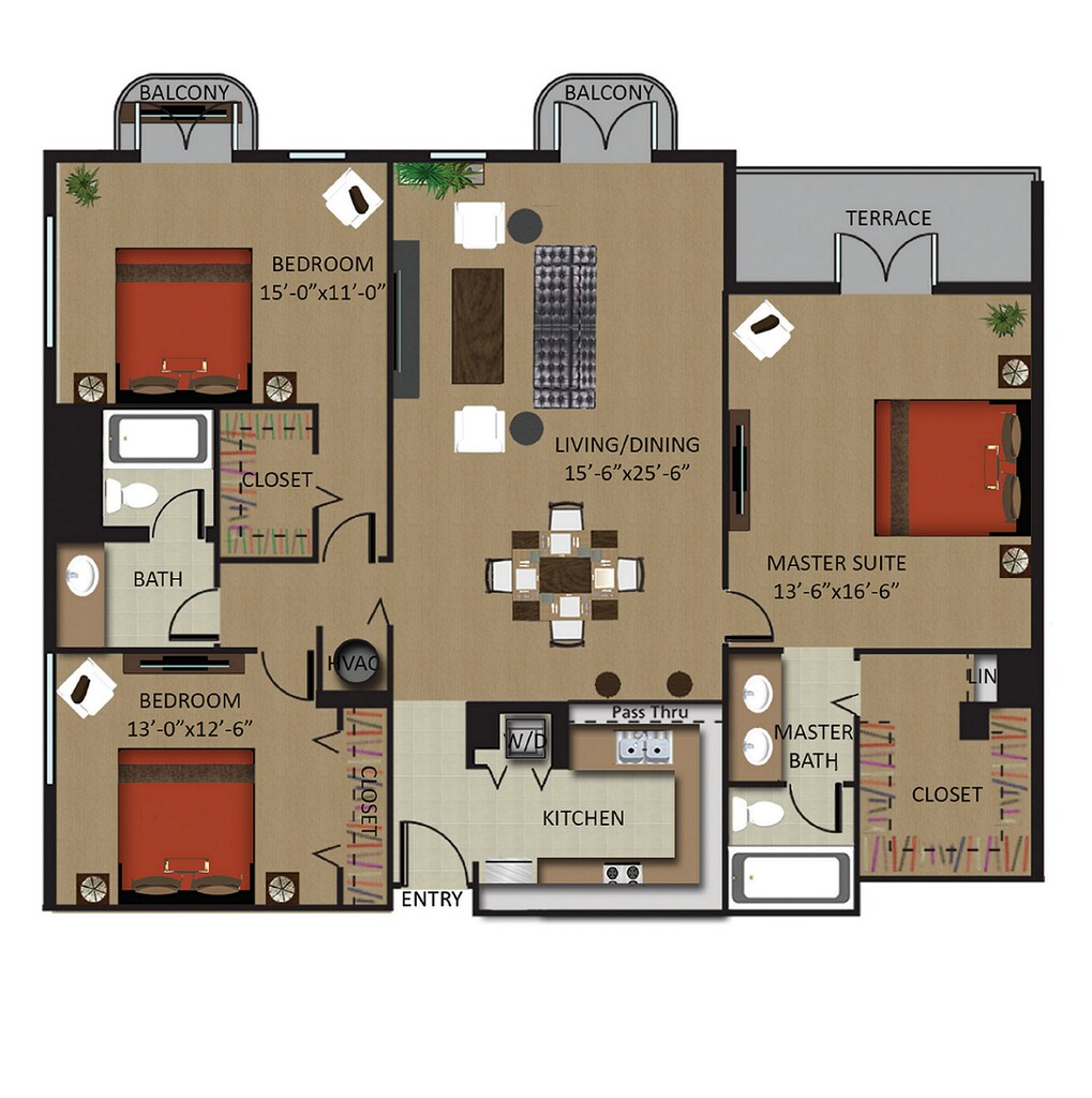 Apartment Model: Hibiscus 1/1 DenFrom $3,4361 Bedroom, 1 Bath, 1048 sq ftAvailable Now![]()