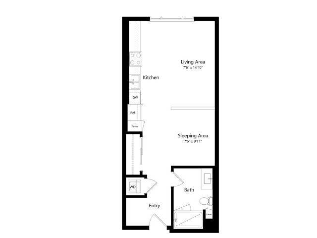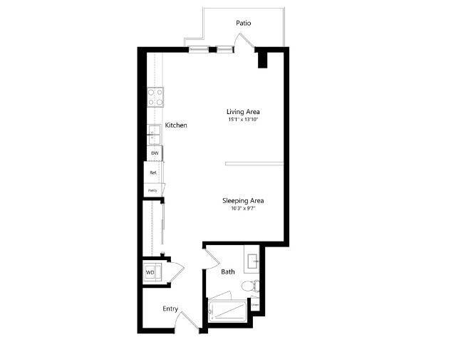 Apartment Model: S-DCall For RatesStudio, 1 Bath, 574 sq ftUnavailableFloor plans are artist's rendering. All dimensions are approximate. Actual product and specifications may vary in dimension or detail. Not all features are available in every rental home. Prices and availability are subject to change. Base rent is based on monthly frequency. Additional fees may apply, such as but not limited to package delivery, trash, water, amenities, etc. Deposits vary. Please see a representative for details.