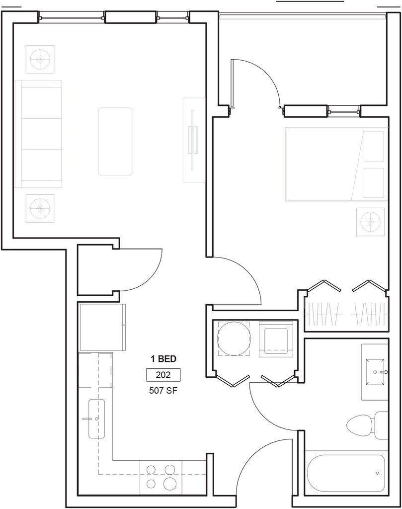 1 Bedroom, 1 Bathroom - Floorplan 1 1 Bedroom, 1 Bathroom