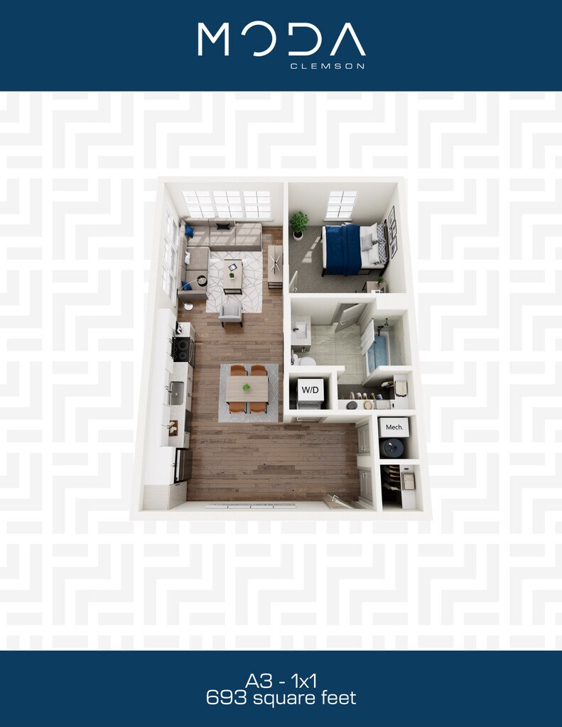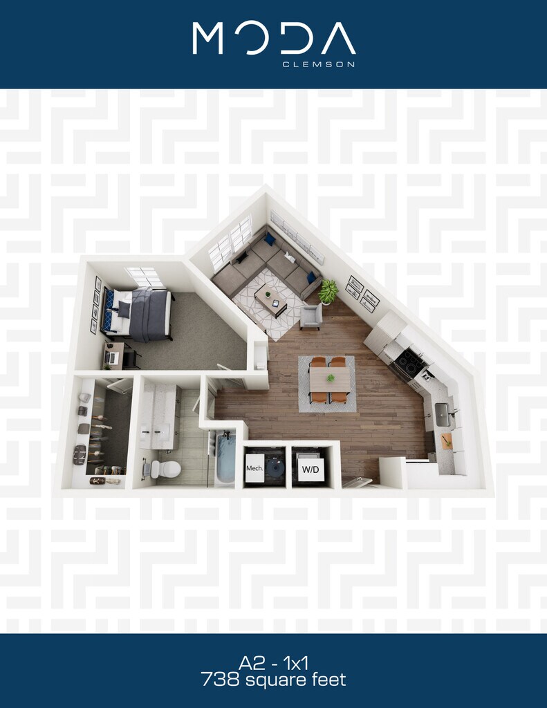 Moda Clemson offers Studio to 3 Bedroom apartments having 600–1,393 sqft. Here is the current pricing and availability: