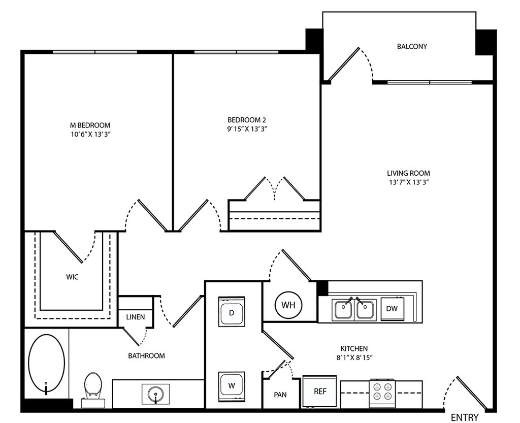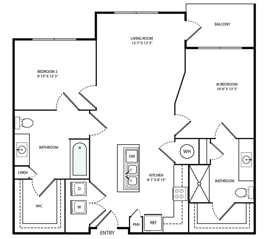 The Cathedral - Floorplan 2 Apartment Unit: 330Apartment Model: The Cathedral2 Bedroom, 2 Bath, 1231 sq ftAvailable NowThe Jefferson