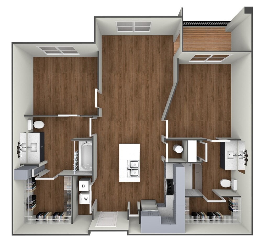 2 Beds, 2 Baths, 1231 sq ftAvailable NowLargest 2 BedroomThis is the largest 2 Bedroom at this PropertyModel Gallery