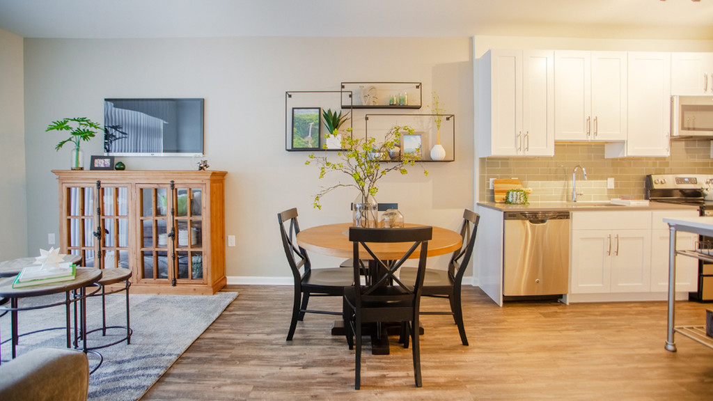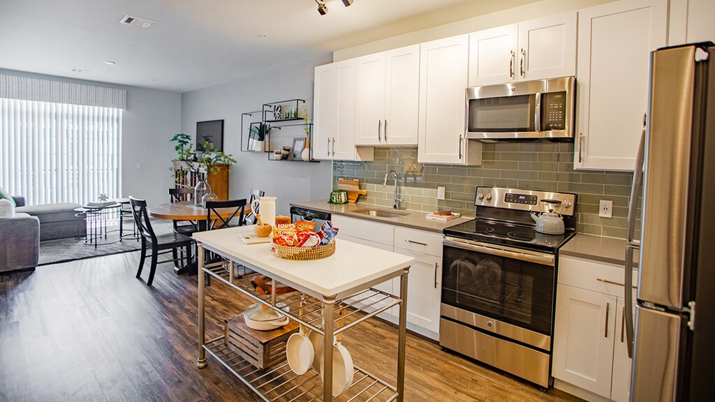 - Fashionably-outfitted studio, one-, two-, and three-bedroom apartment homes