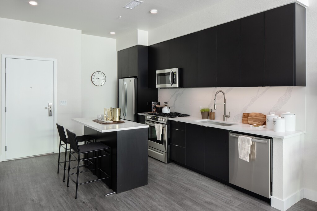 Modera Art Park in RiNo provides a vibrant environment to work, live, and entertain-the ultimate combination of luxurious features and urban radiance, combined with an eclectic collection of community amenities. Featuring brand new studio, one- and two-bedrooms with townhome options. Our RiNo apartments feature lofty ceilings, expansive floor to ceiling windows with panoramic views and designer-inspired aesthetics. Details like 42" custom cabinetry, quartz countertops and backsplashes, and elegant lighting will leave you speechless. During the day, enjoy panoramic views of the Rocky Mountains from the resort-inspired pool deck, and at night, enjoy views of the city from the stylish rooftop lounge.