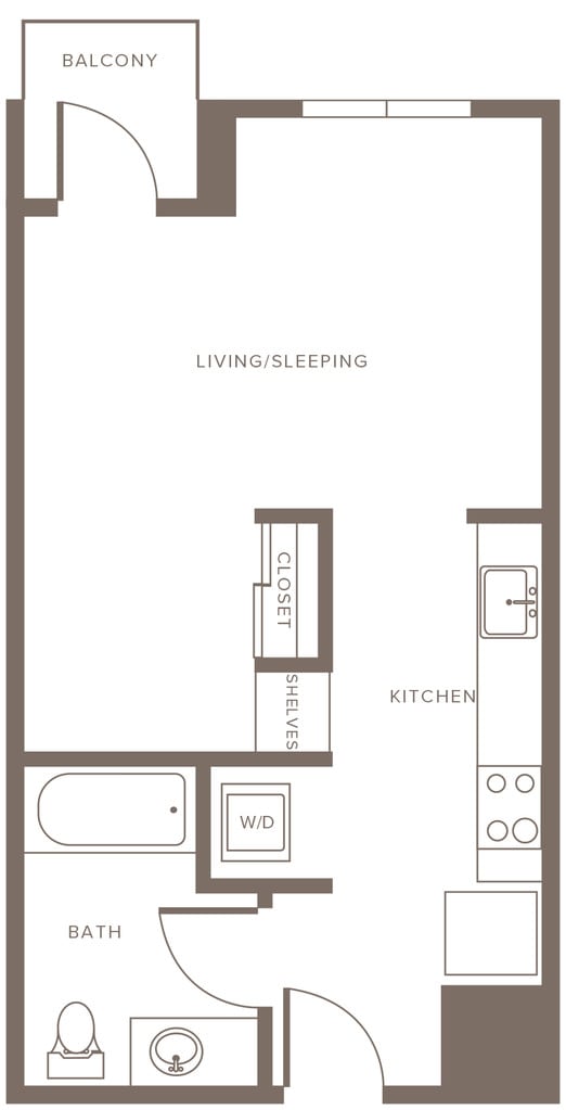S1 - Floorplan 1 Apartment Unit: 602Apartment Model: S1$1,468Studio, 1 Bath, 452 sq ftAvailable Now1 Bedroom