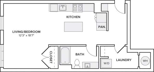 S03 - Floorplan 1 Apartment Unit: 0-117Apartment Model: S03Studio, 1 Bath, 681 sq ftAvailable December 18, 2025Floorplan S01