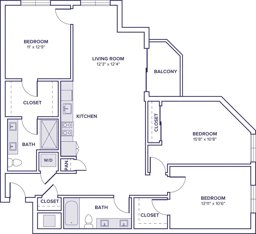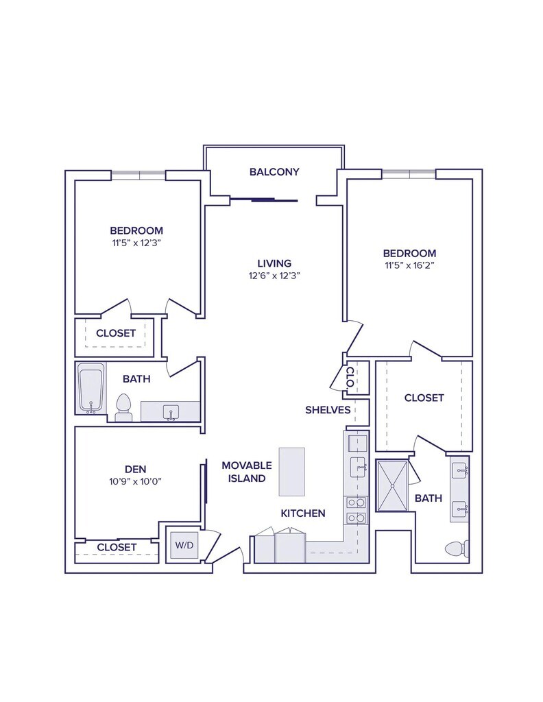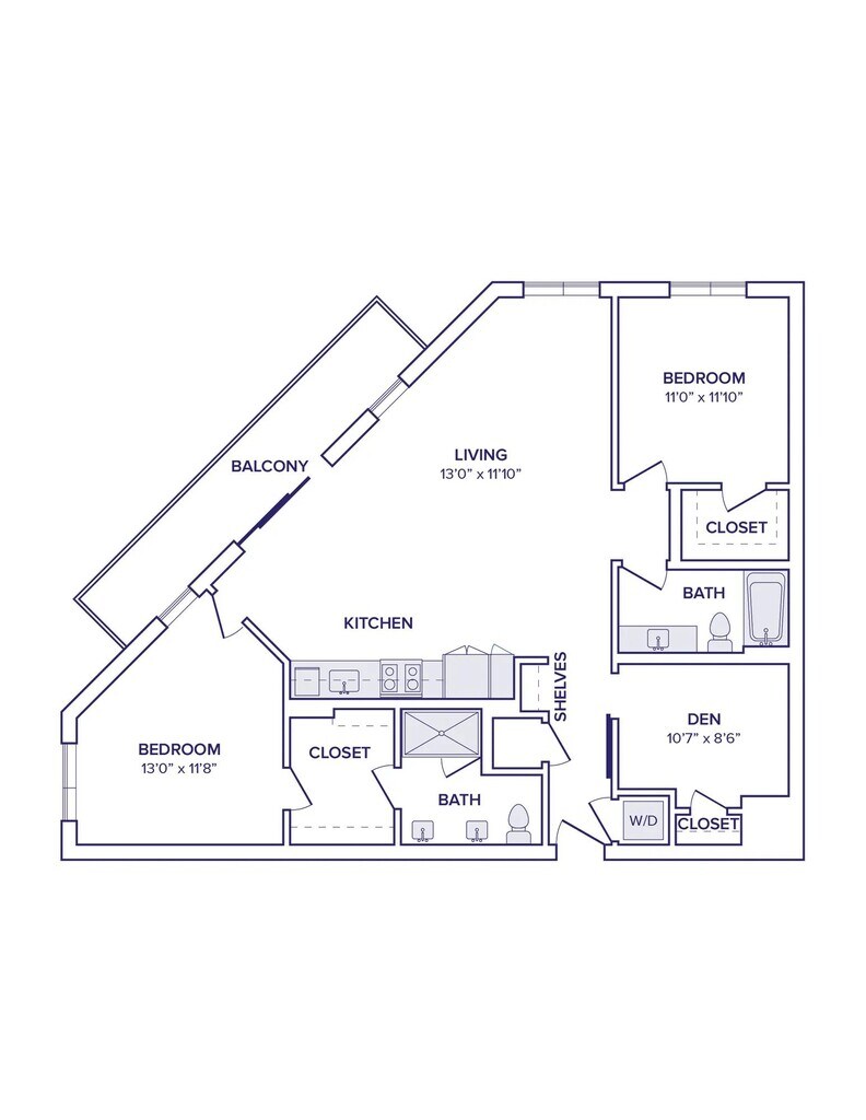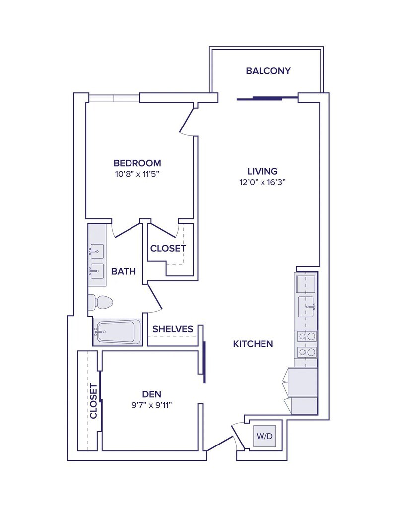 - Studio, 1-, 2-, and 3-bedroom apartment homes with den layouts available