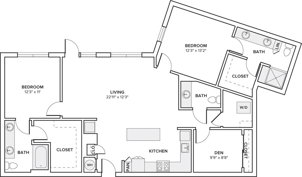 - Studio, 1-, and 2-bedroom homes with den layouts available