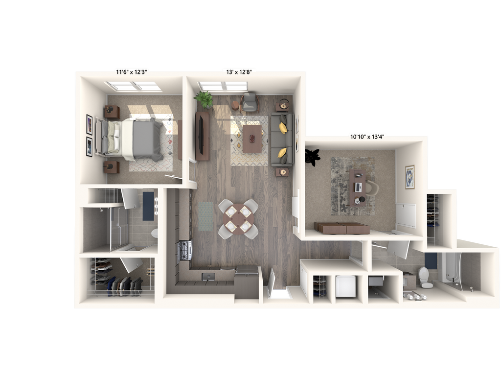 - Studio, 1-, and 2-bedroom apartment homes with den layouts