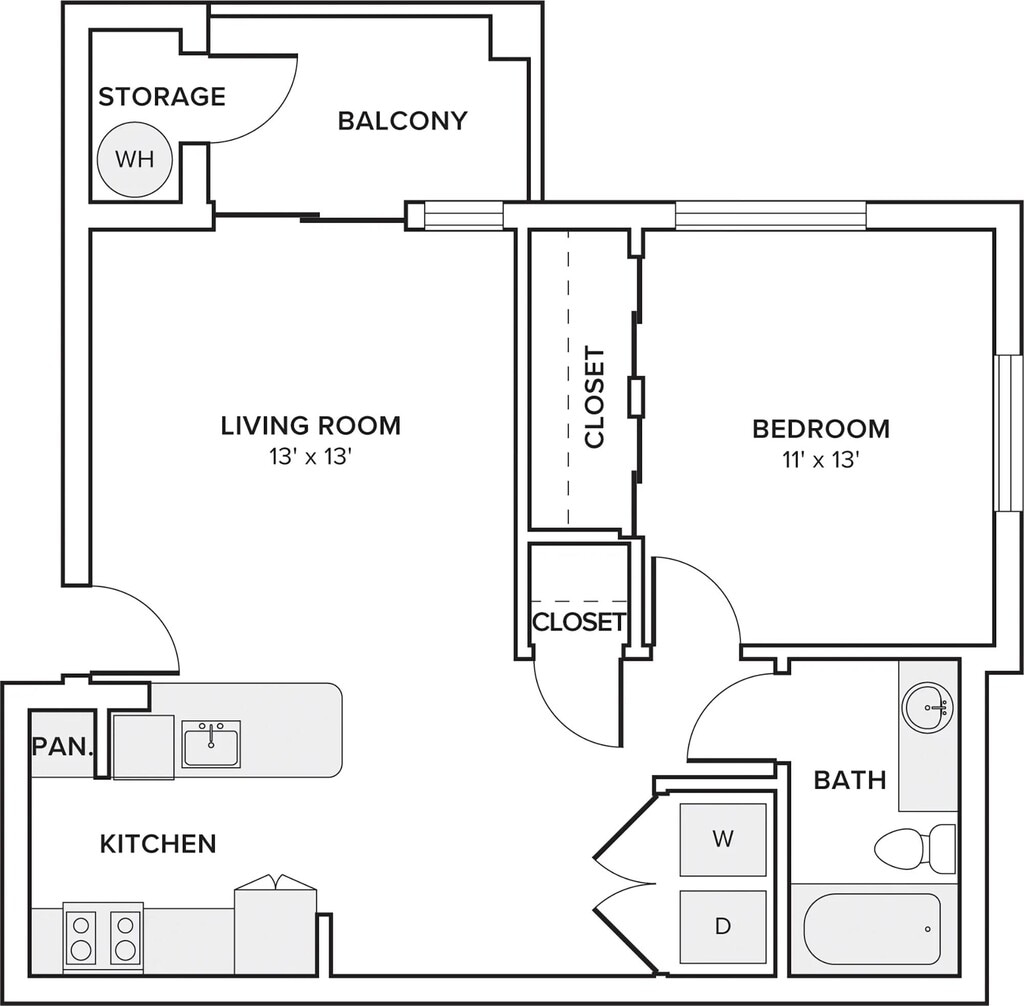 1 Bed, 1 Bath, 712-723 sq ftAvailable NowLargest 1 BedroomThis is the largest 1 Bedroom at this PropertyModel Gallery