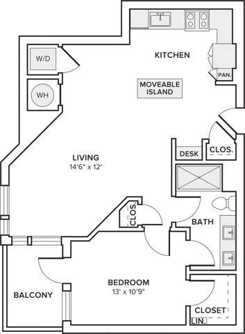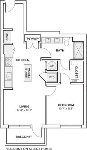 S01 - Floorplan 1 Apartment Unit: 0-140Apartment Model: S01From $1,655Studio, 1 Bath, 585 sq ftAvailable Now1 Bedroom