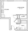 S01 - Floorplan Apartment Unit: 1-321Apartment Model: S01Studio, 1 Bath, 518 sq ftAvailable NowFloorplan S03