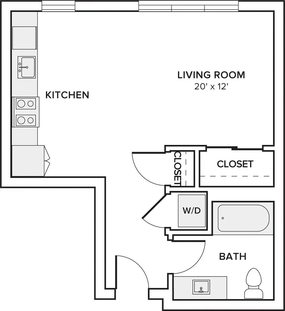 S02 - Floorplan Apartment Unit: 1-336Apartment Model: S02Studio, 1 Bath, 519 sq ftAvailable NowFloorplan S01