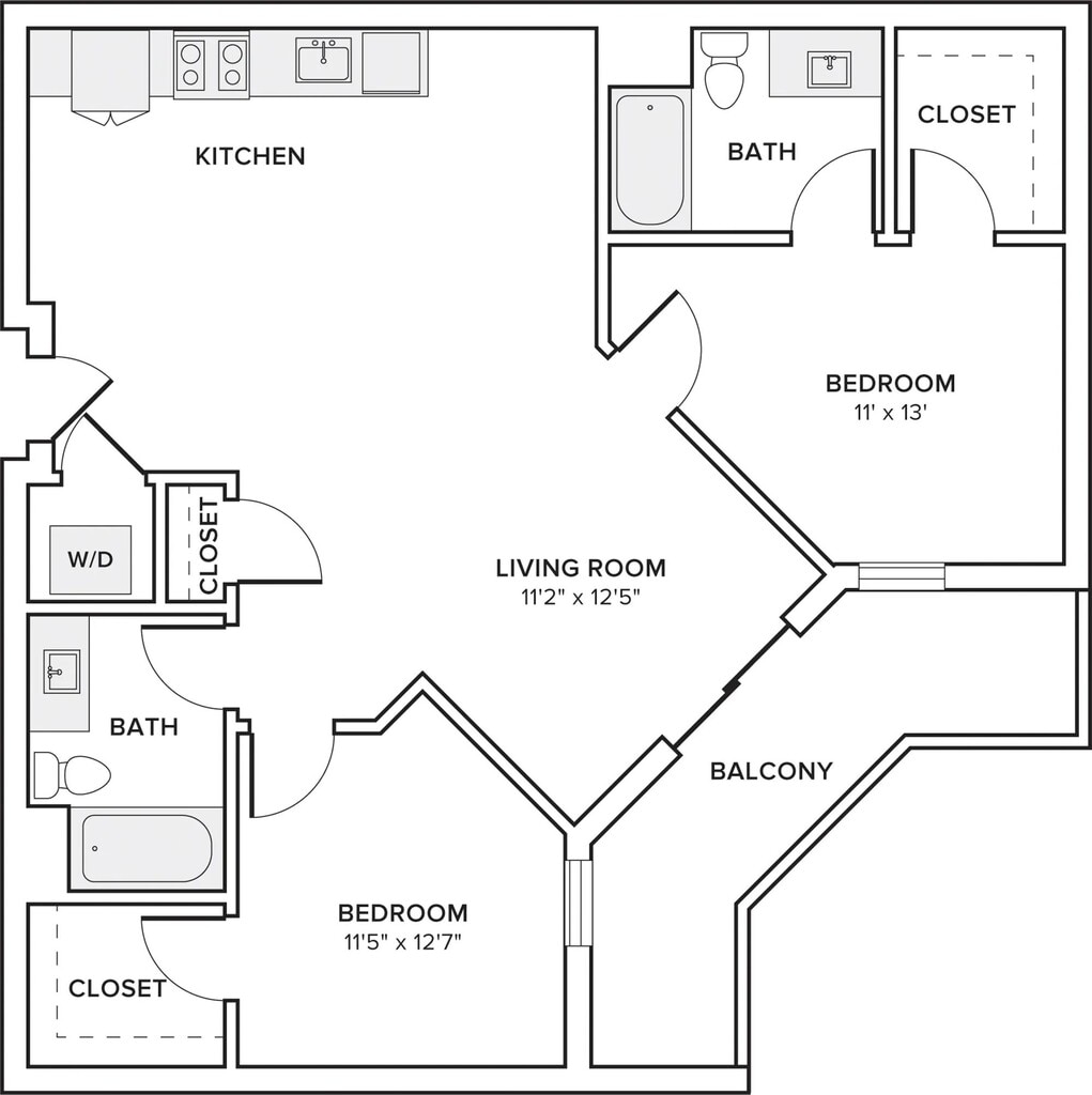 A17 - Floorplan 1 Apartment Unit: 1-705Apartment Model: A171 Bedroom, 1 Bath, 634 sq ftAvailable NowFloorplan A01