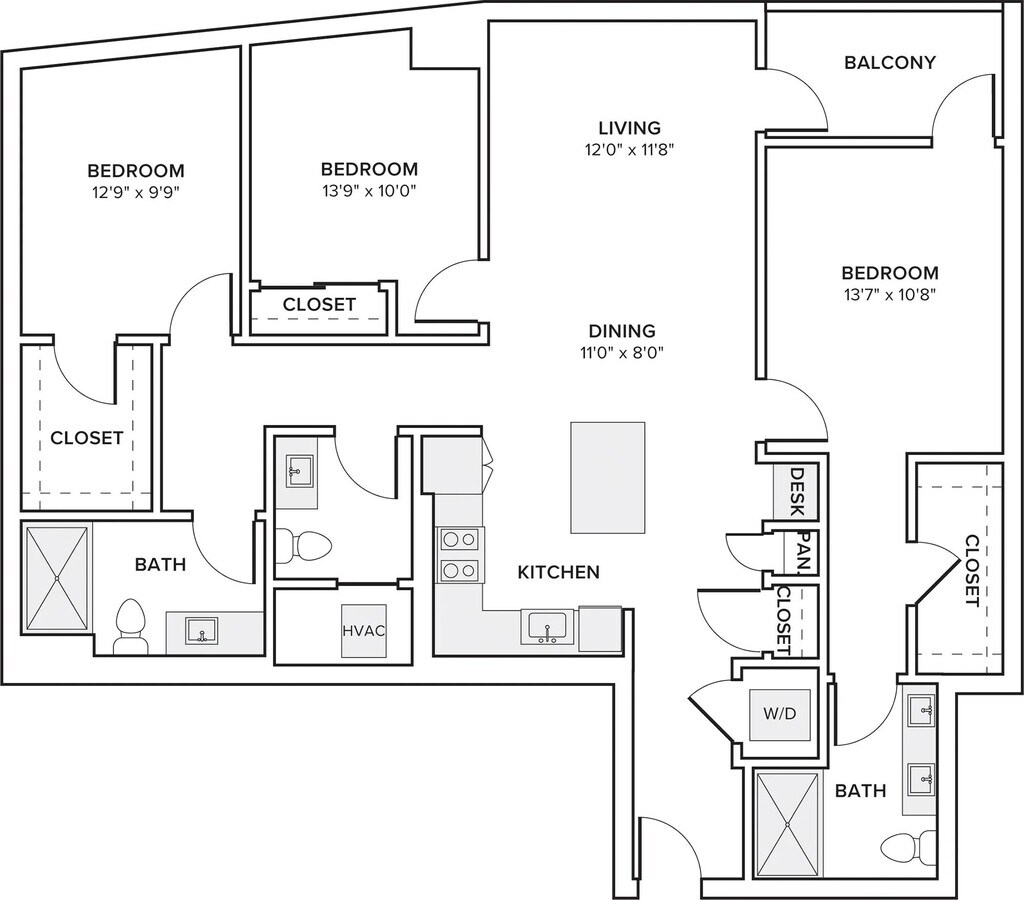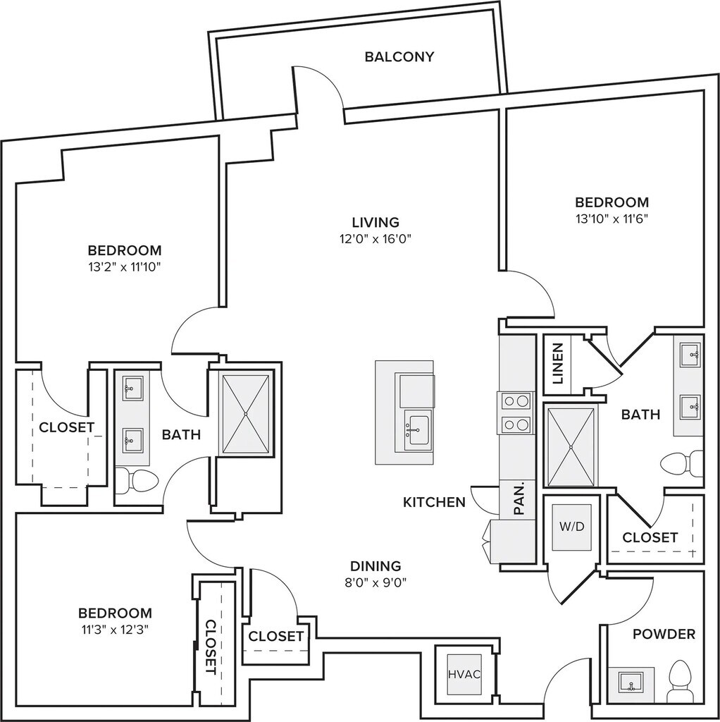 - Studio, 1-, 2-, and 3-bedroom apartment homes with den and penthouse layouts available