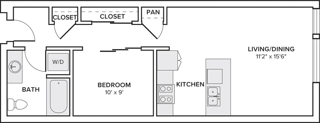 - Studio, one-, and two-bedroom apartment homes