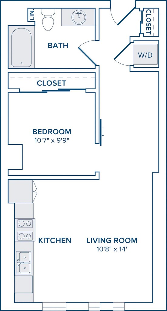 S01 - Floorplan 1 Apartment Unit: 1-116Apartment Model: S01From $2,299Studio, 1 Bath, 540 sq ftAvailable Now1 Bedroom