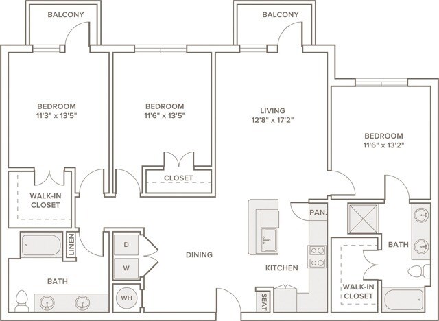 - Studio, 1-, 2-, and 3-bedroom apartment homes