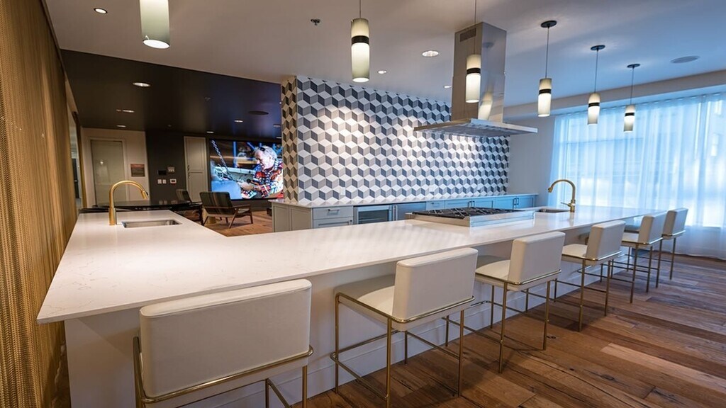 Modera South Lake Union's sophisticated studio, one- and two-bedroom apartment homes (almost 300 to choose from!) include all the necessities to make life hum, - complimentary ultra-high-speed Internet, gas ranges and air conditioning are the rule, not the exception. Don't worry, we definitely didn't skimp on the extras - in fact, quite the opposite. High-end features and finishes are what you can expect in your apartment and throughout the entire community. From our chef-inspired kitchens with quartz countertops, stainless steel appliances, custom cabinetry, and trendy tile backsplashes to in-home washers and dryers for hassle-free laundry days, we've got what you want in a pet-friendly community.