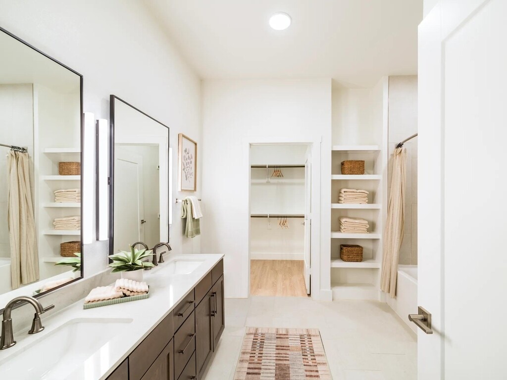 - Designer bathrooms with double vanities, quartz countertops, and backlit mirrors*