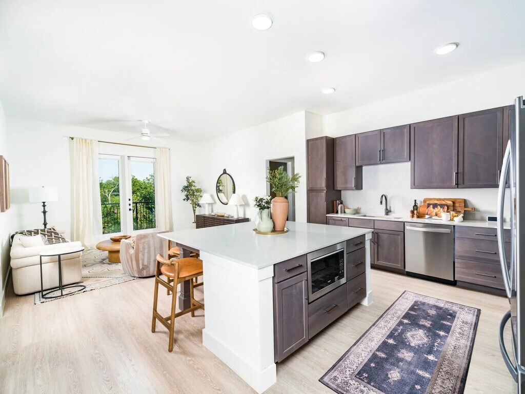 Modera Trailhead offers thoughtfully designed 1-, 2-, and 3-bedroom apartment homes with layouts that cater to your lifestyle. Each home is equipped with a chef-inspired kitchen featuring stainless steel appliances, quartz countertops, and ample storage, making meal prep seamless and entertaining guests a guaranteed success. Premium collection homes feature marble countertops and backsplashes, French door refrigerator, an extended kitchen island, and more. Bedrooms are spacious retreats, with large closets providing plenty of room to keep your wardrobe organized and easily accessible. Discover a home where every detail is designed to enhance your everyday, making Modera Trailhead the ultimate retreat in East Dallas.