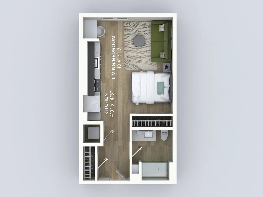 S01 - Floorplan 1 Apartment Unit: 1-168Apartment Model: S01From $1,739Studio, 1 Bath, 506 sq ftAvailable January 23, 20261 Bedroom