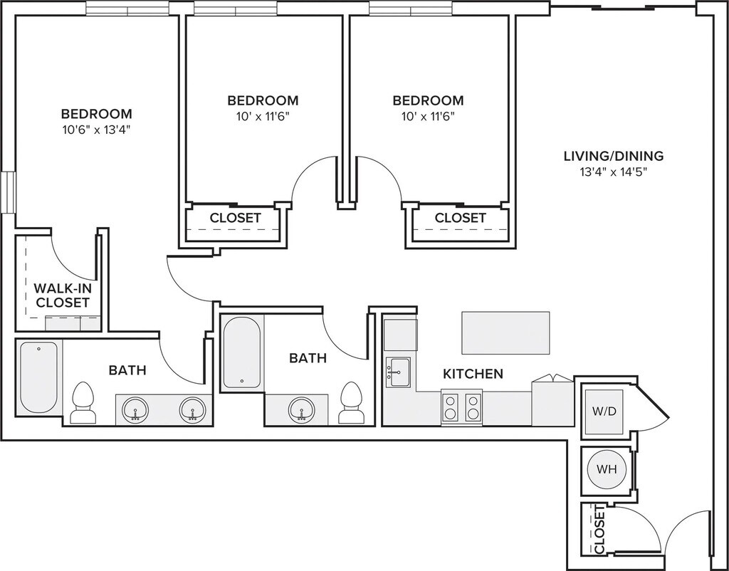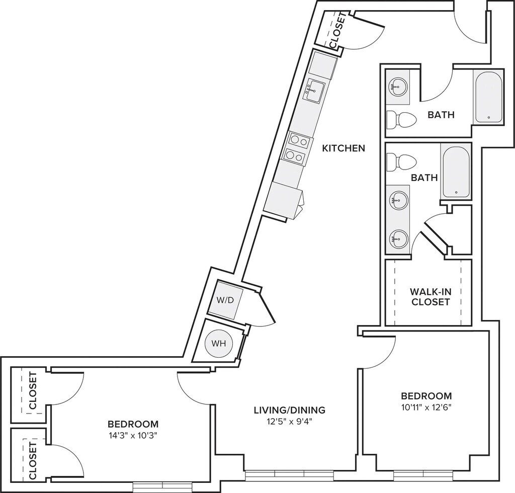 A12 - Floorplan 1 Apartment Unit: 1-307Apartment Model: A12From $2,1741 Bedroom, 1 Bath, 773 sq ftAvailable NowFloorplan A03