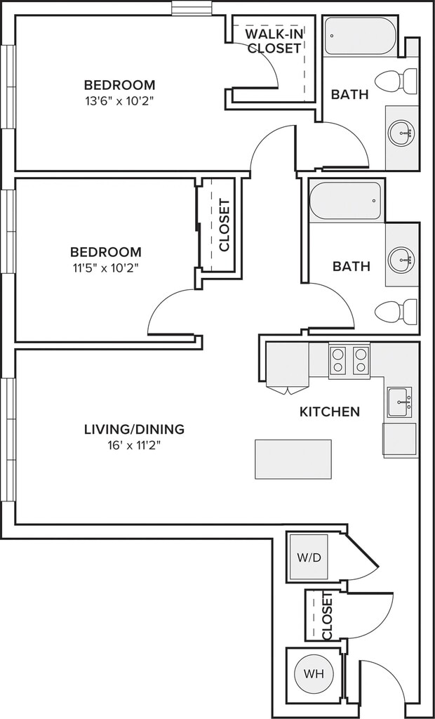 A13 - Floorplan 1 Apartment Unit: 1-409Apartment Model: A131 Bedroom, 1 Bath, 935 sq ftAvailable NowFloorplan A02