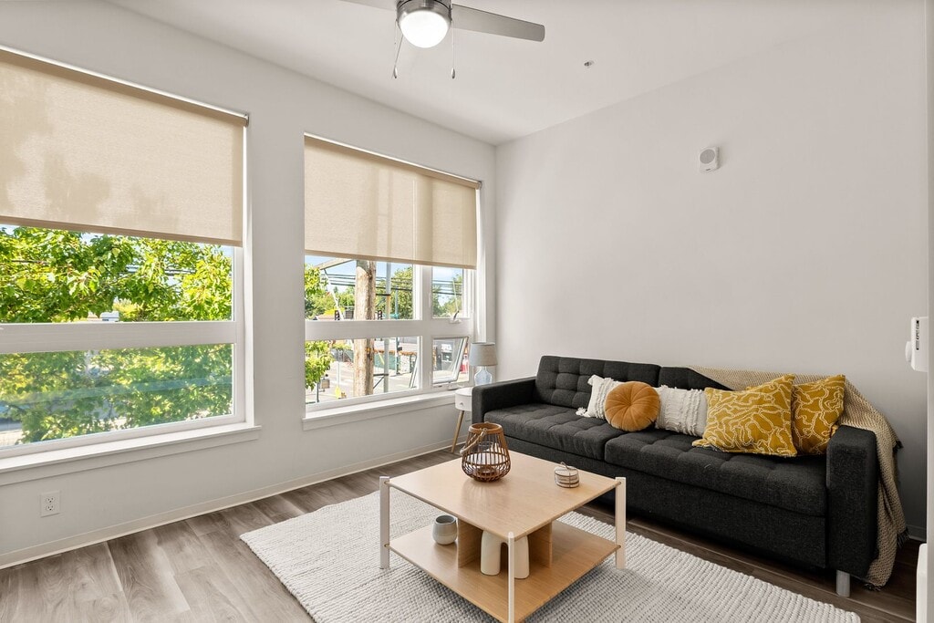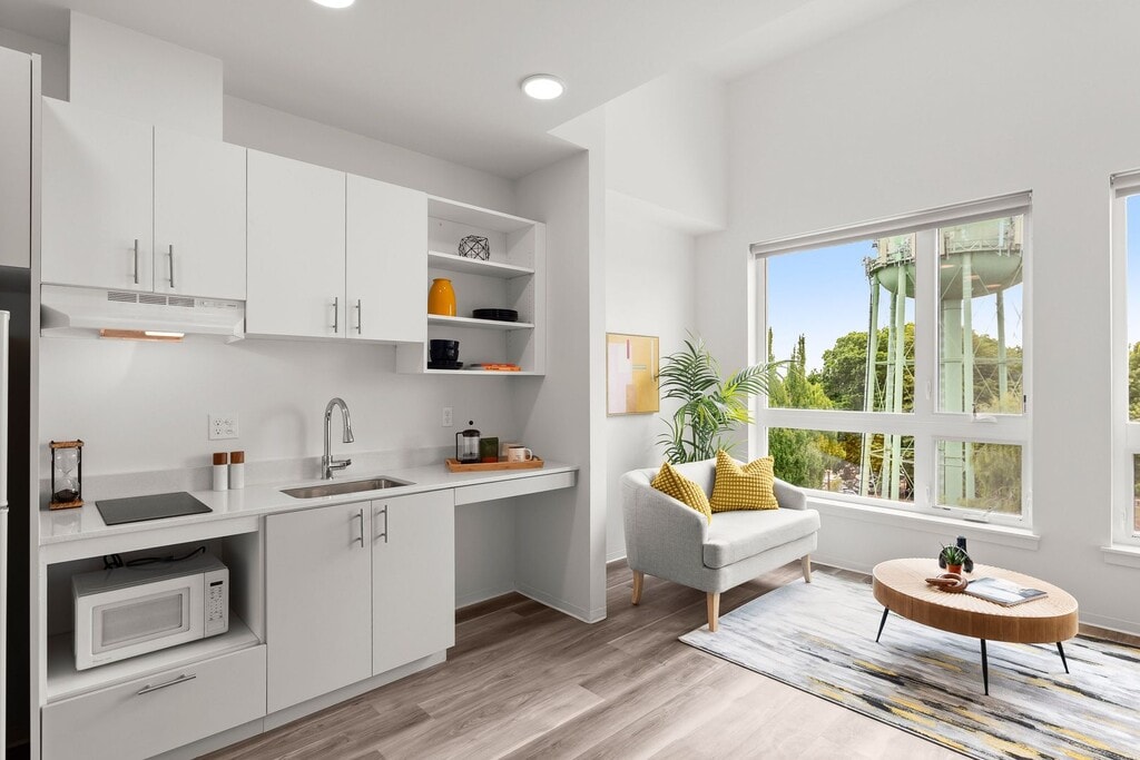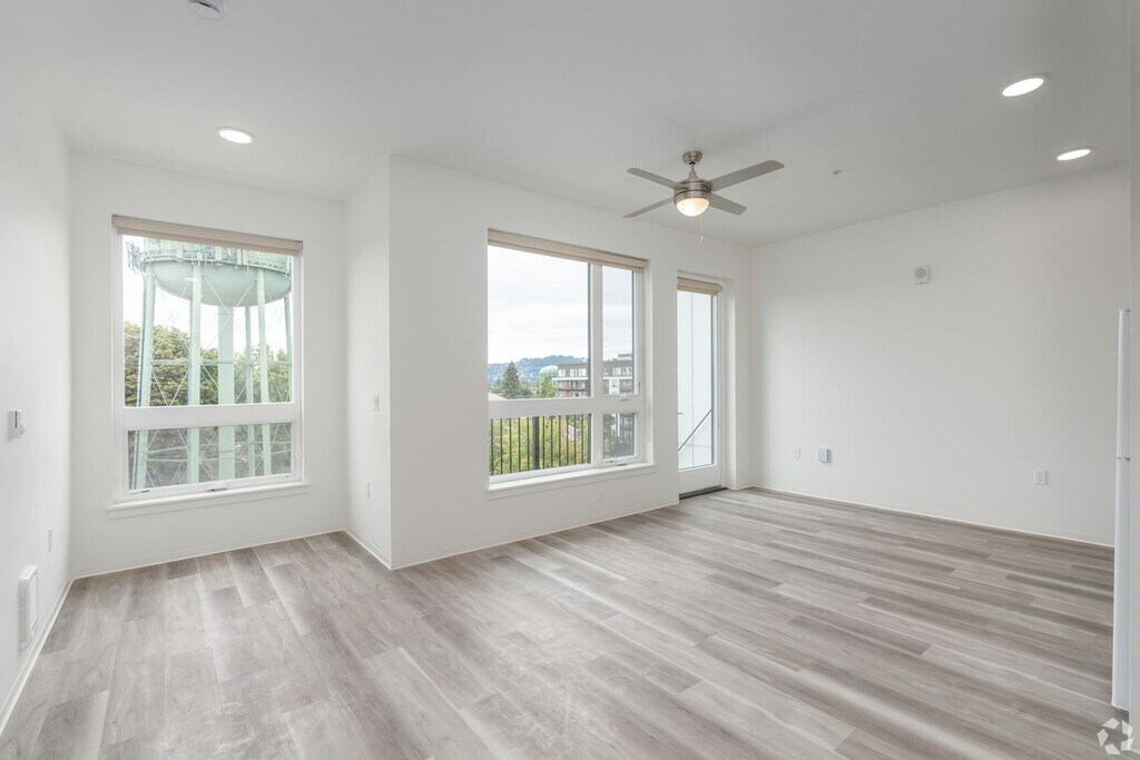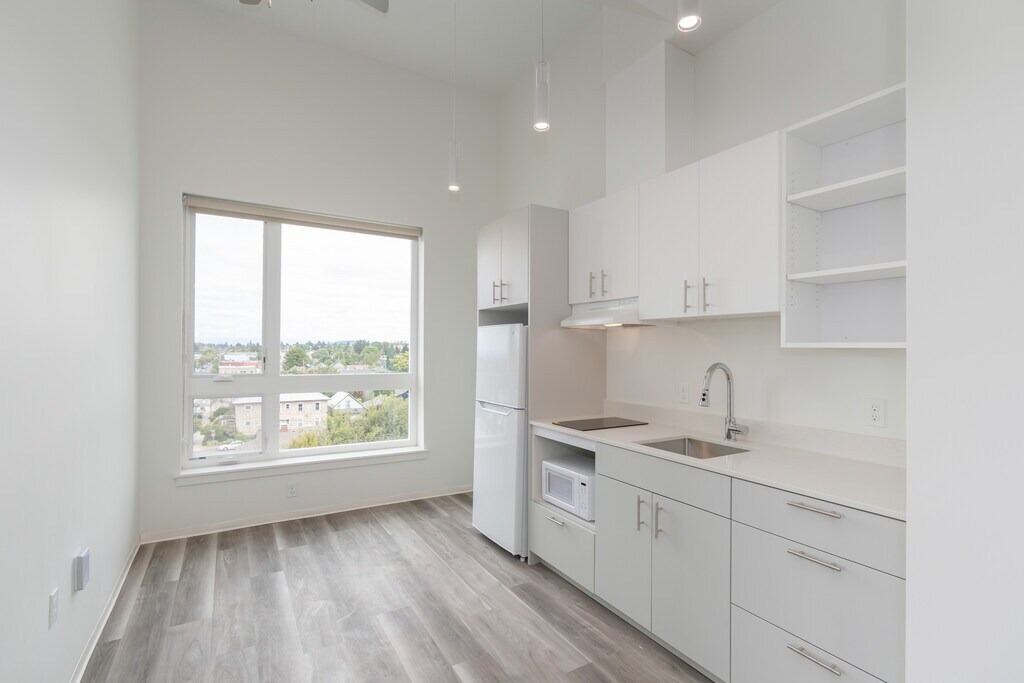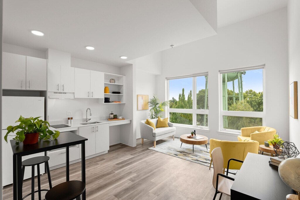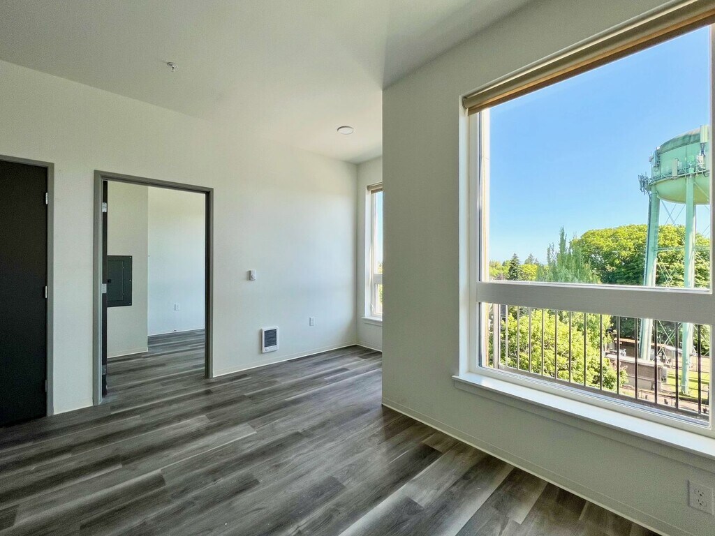 Koz on Interstate is a new apartment community in Portland’s Overlook neighborhood, designed with modern style and everyday convenience in mind. Every apartment features high ceilings, oversized windows, and sleek vinyl flooring for a bright and polished look. Community amenities include a rooftop deck with BBQs and sweeping city views, on-site laundry, secure bike storage, and controlled access. Utilities are kept simple with a flat $175/month rate, covering electricity, water, sewer, garbage, and WiFi. Intentionally located at the N Killingsworth MAX station & on bus route 42, getting around the city couldn’t be easier. Store your bike on-site or park in the neighborhood without any parking fees or time limits. Plus, local favorites like La Perlita, Sweedeedee, Sit Tite, and the Tulip Shop Tavern are all within walking distance—perfect for your morning coffee, weekend brunch, or a night out.