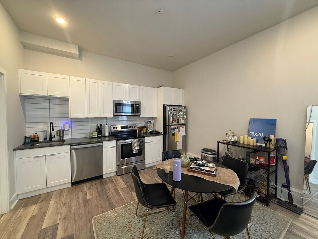 This first floor unit with keyless private entrance is the last unit left in the highly desirable "BullardBuilding." This student housing apartment is only 2 blocks from Temple University main campus and a 10 minute walk to Morgan Hall, IBC, and Rite Aid. This very modern clean unit has 2 bedroom 2 full bathrooms, light oak hard floors, mosaic tile in bathroom, washer dryer, brand new stainless steel Appliacnes in a custom all white kitchen, patio space, 10 foot high ceilings and secured private entrance off the 1600 block of Willington st. The Bullard Building has secured bike racks, mailroom, and keyless entry also a study lounge. Pets are welcome. ONLY PAY FIRST AND SECURITY TO MOVE IN! Move in ready Aug 1st for the start of Fall Semester. $25 WATER USAGE FEE PER TENANT