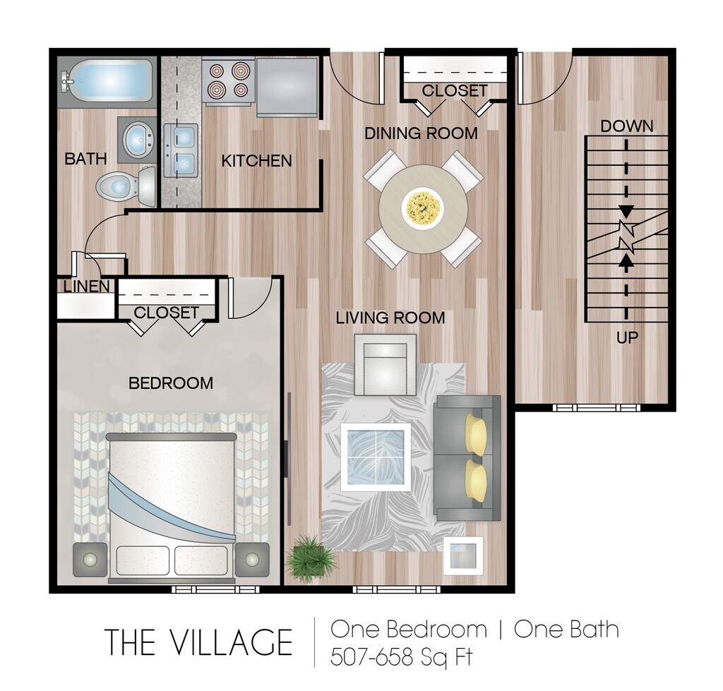 Apartment Model: The Village - 1 BedroomCall For Rates1 Bedroom, 1 Bath, 507-658 sq ftUnavailable![]()