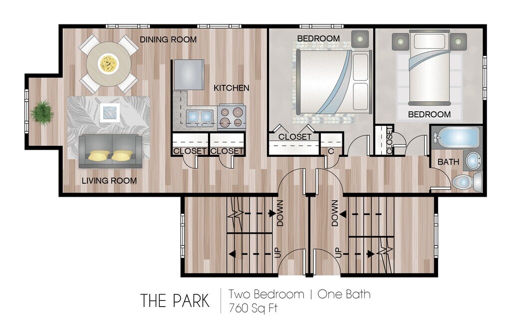 Apartment Model: The Park - 2 BedroomFrom $1,3002 Bedroom, 1 Bath, 768 sq ftAvailable Now![]()