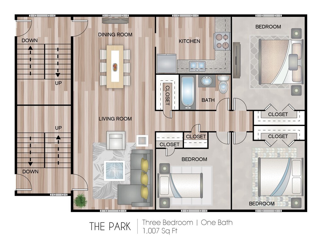 Apartment Model: The Park - 3 BedroomCall For Rates3 Bedroom, 1 Bath, 1007 sq ftUnavailable![]()