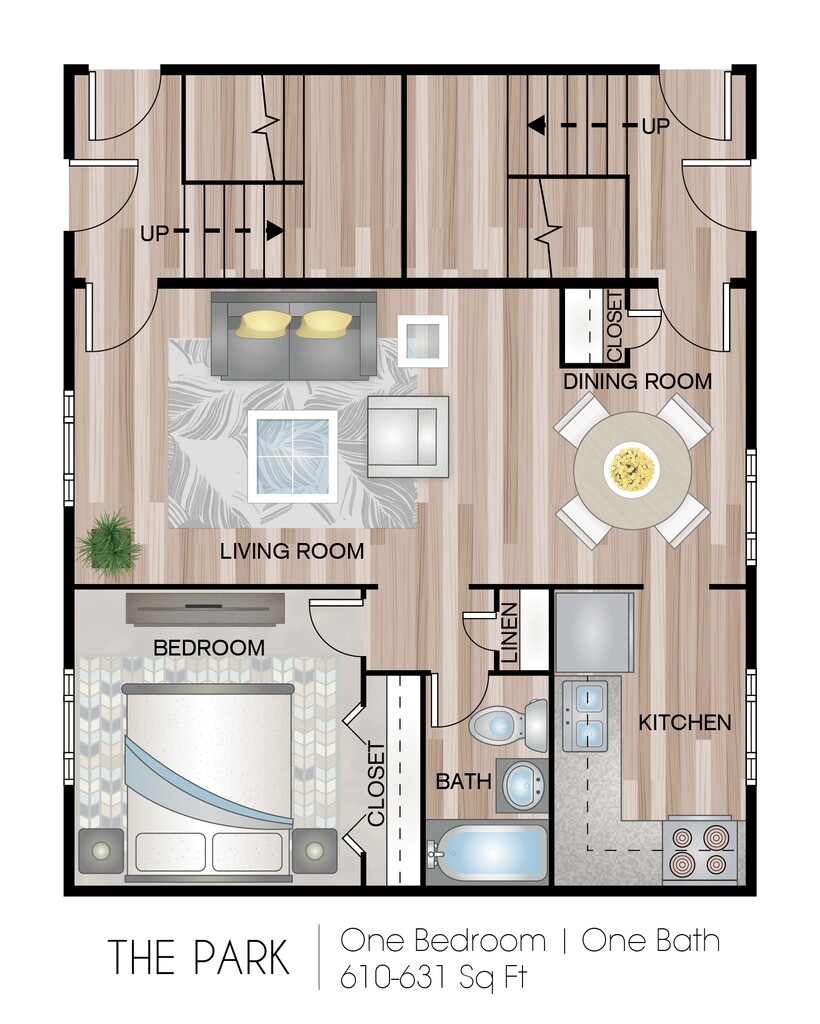 Apartment Model: The Park - 1 BedroomCall For Rates1 Bedroom, 1 Bath, 610-631 sq ftUnavailable![]()