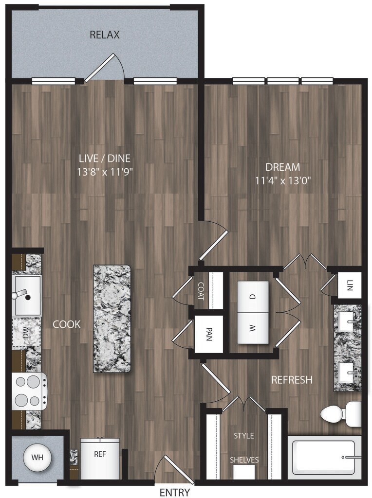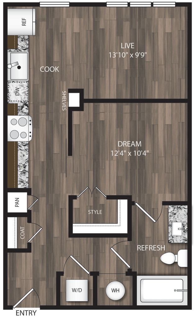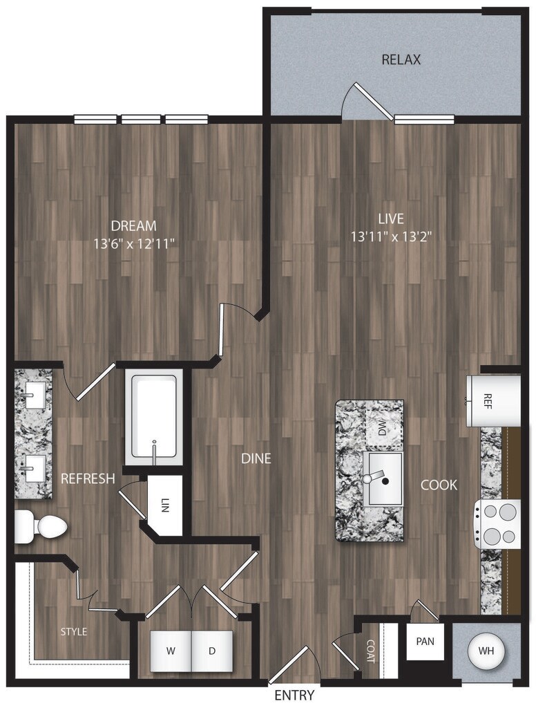 Studio, 1 Bath, 589 sq ftAvailable January 15, 2026Model Gallery