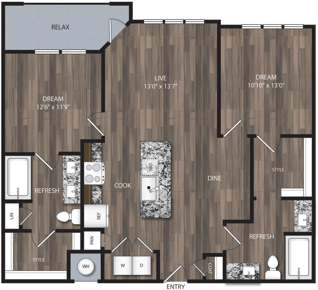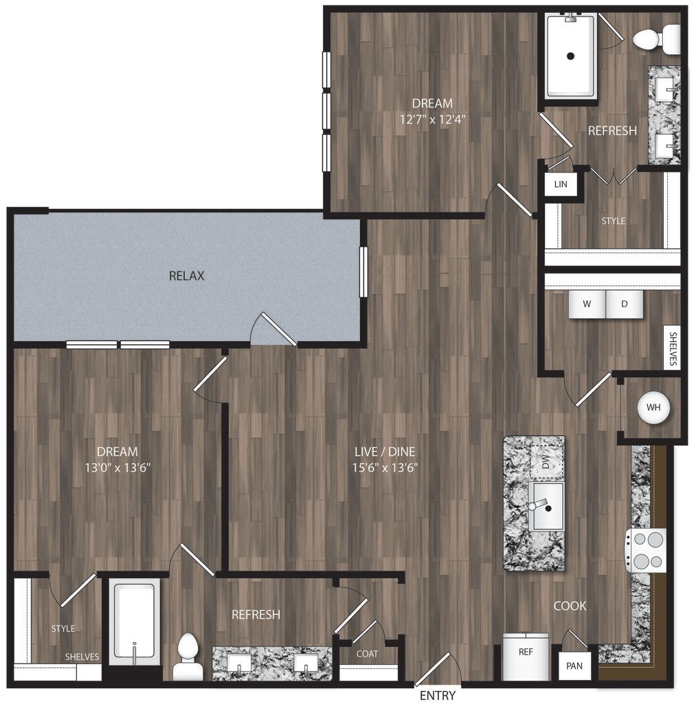 Apartment Model: B1From $1,9422 Bedroom, 2 Bath, 1055 sq ftAvailable Now![]()