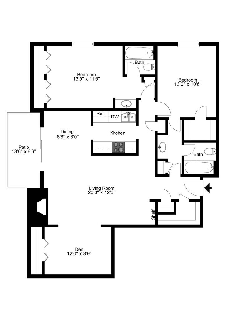 MPA-1x1DEN(835) - Floorplan 12 Apartment Unit: 50203Apartment Model: MPA-1x1DEN(835)$1,4001 Bedroom, 1 Bath, 835 sq ftAvailable Now2 Bedrooms